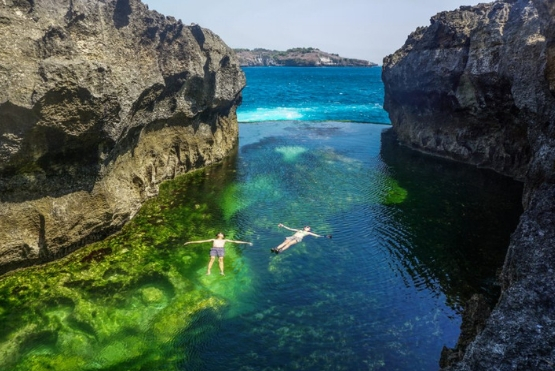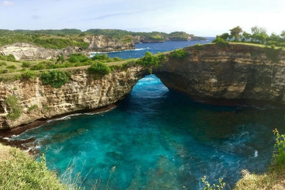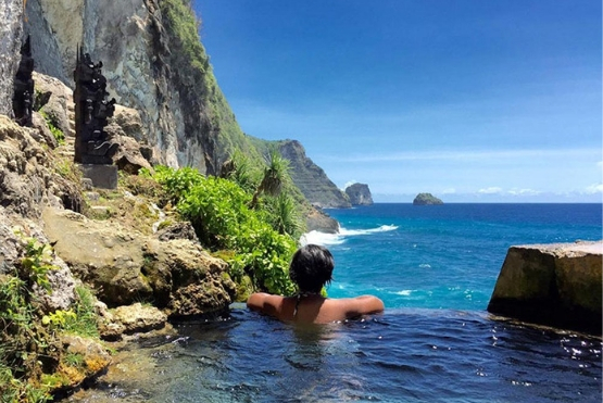 A spectacular rock formation on Nusa Penida island’s southwestern cliff edges. The naturally formed rock lagoon offers a scenic seascape. You can descend into its crystal-clear rock pools for a swim or a soak during low tide.